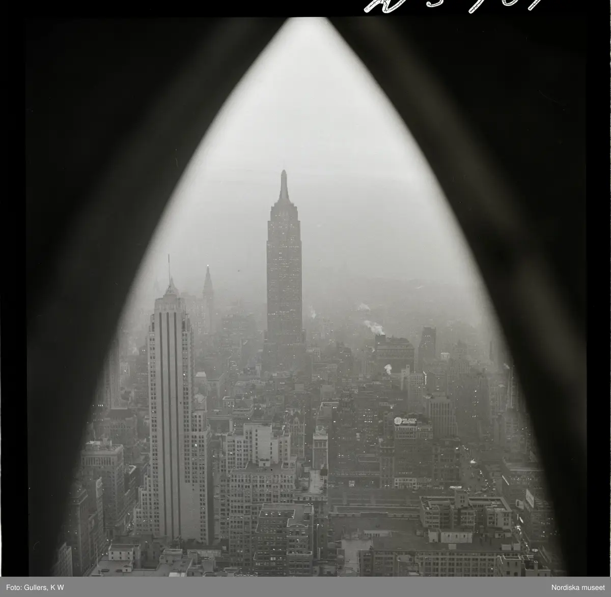 1690 New York allmänt (N.Y. Herald Tribune). Vy över stadens skyskrapor, Empire state building.