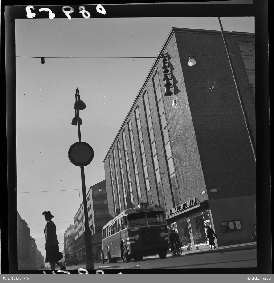 539 Söder. Medborgarhuset. En buss passerar på Götgatan.