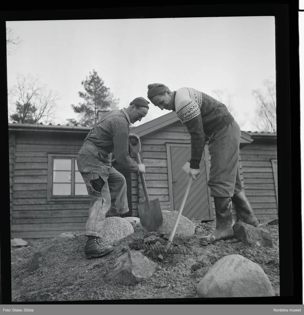 Titel: Hellasgården, Ringblom med fru på trappan samt skidåkaren Göte Andersson, 15-12-1944.