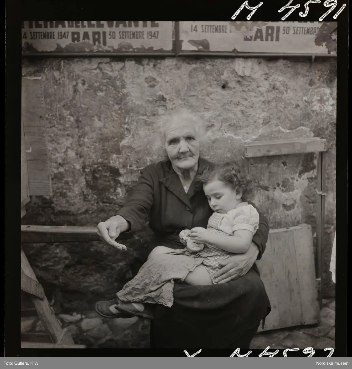 1717/B Rom. En äldre kvinna sitter på gatan med en flicka i famnen.