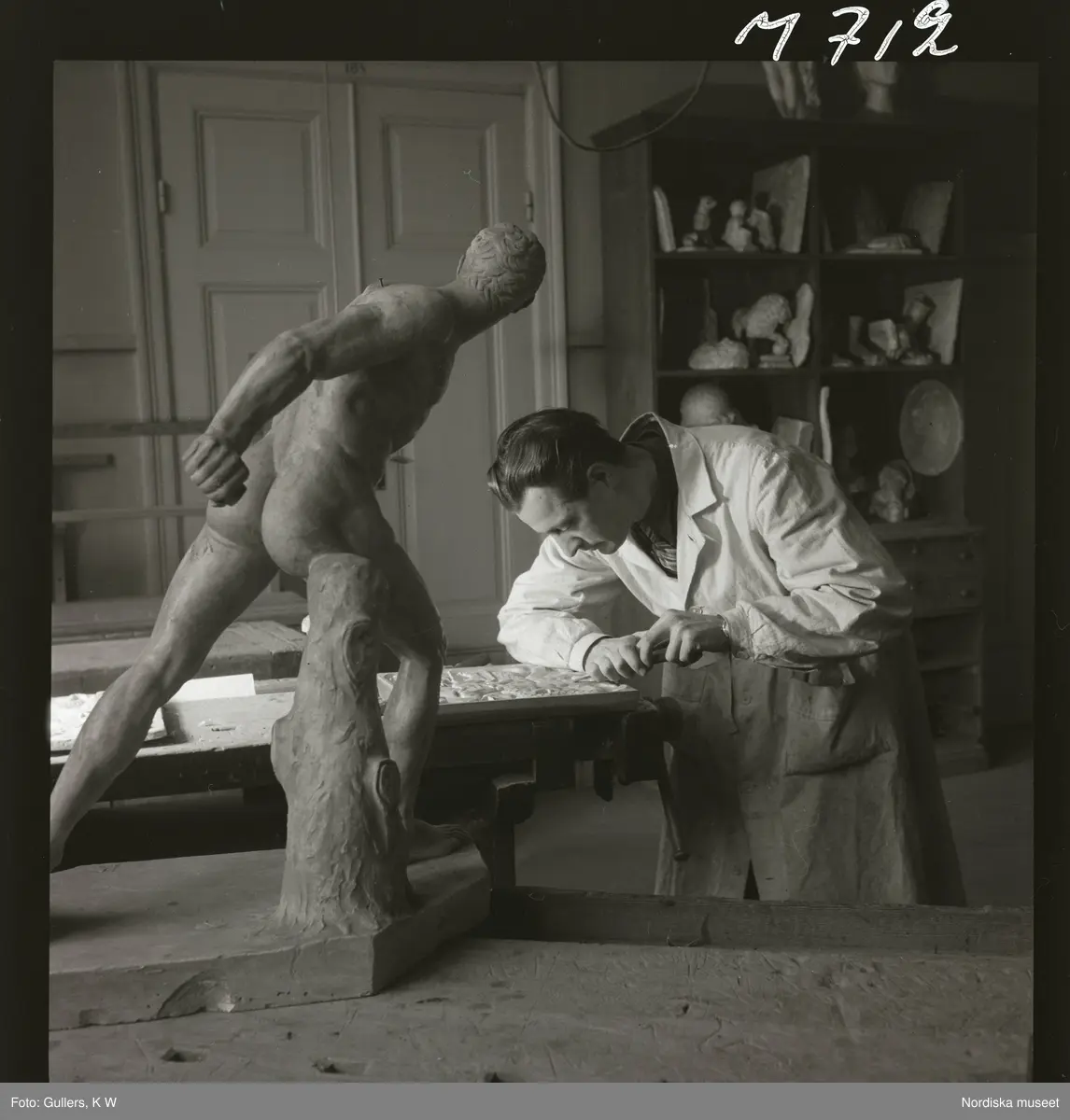 1677 Konstfackskolan. Bildhuggare i ateljé.