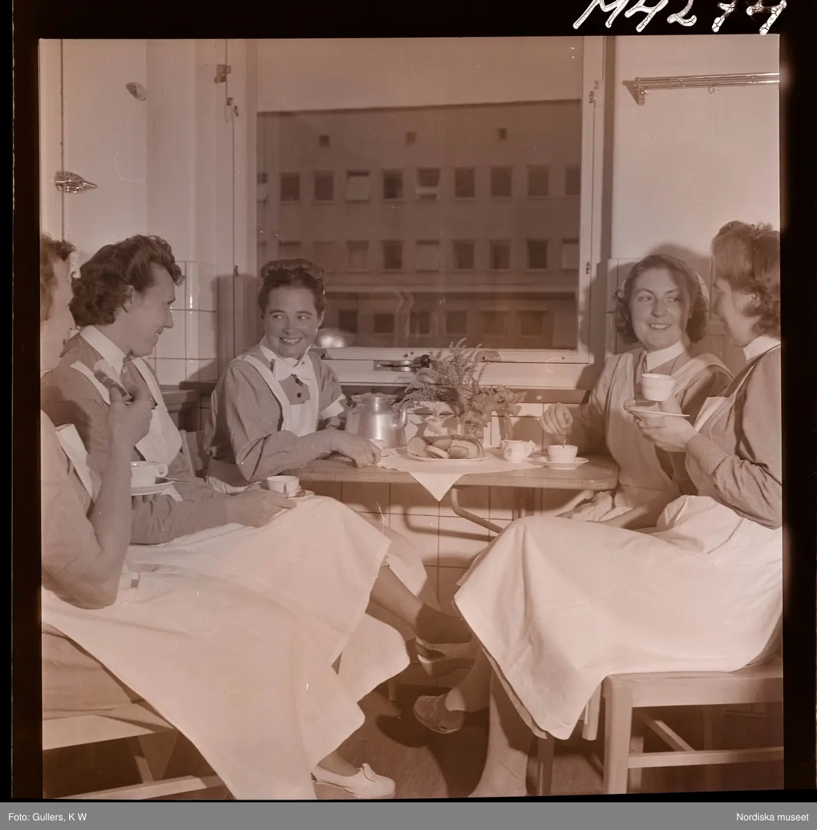 1714 En sjuksköterskas arbetsdag på södersjukhuset. Fikarast. Några sköterskor tar en paus och dricker kaffe.