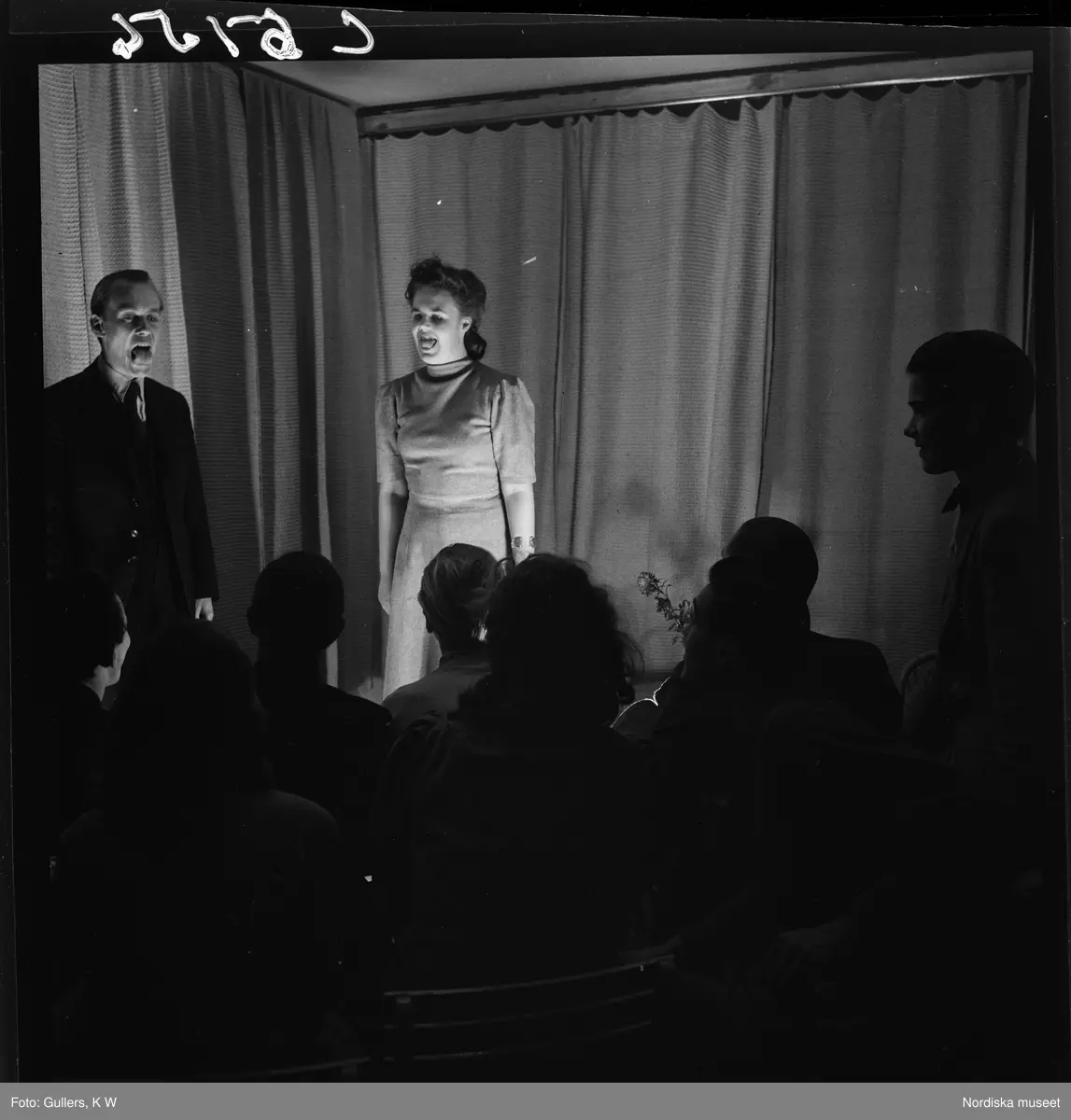 505 Wityansky Teaterskola för Allers. En manlig och en kvinnlig elev på scen, publik framför.