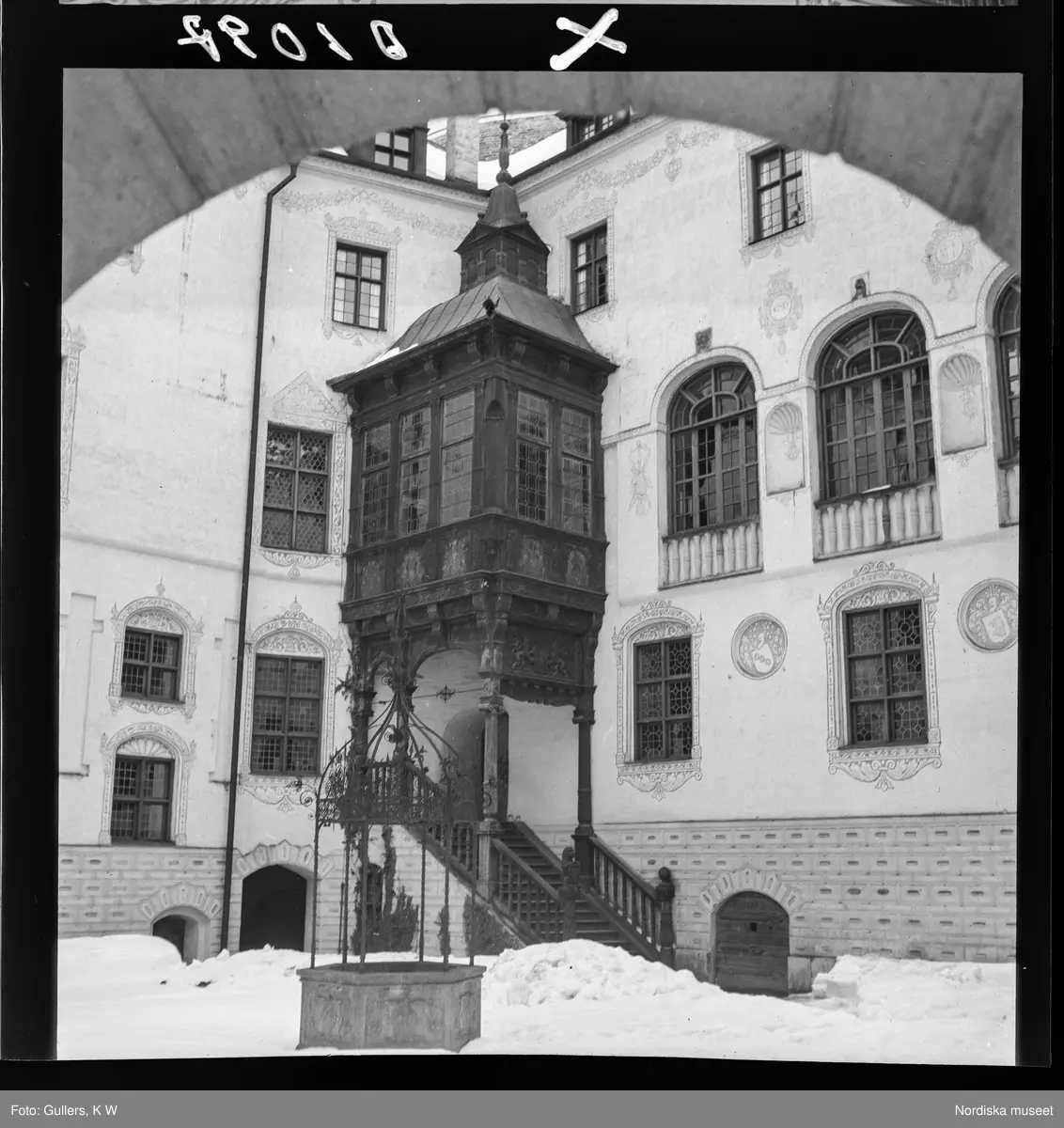 511 Gripsholms Slott för Allers. Borggården, brunn, trappa.