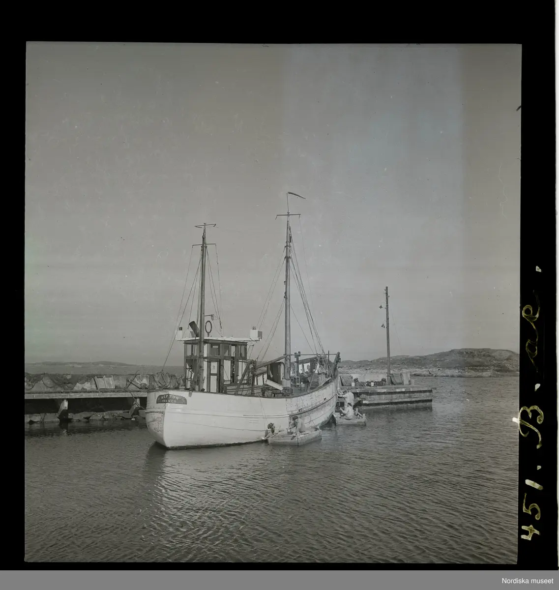 GG 628 Neptun under ommålning i Vrångö hamn. Vid målningsarbetet används flottar med låga relingar.