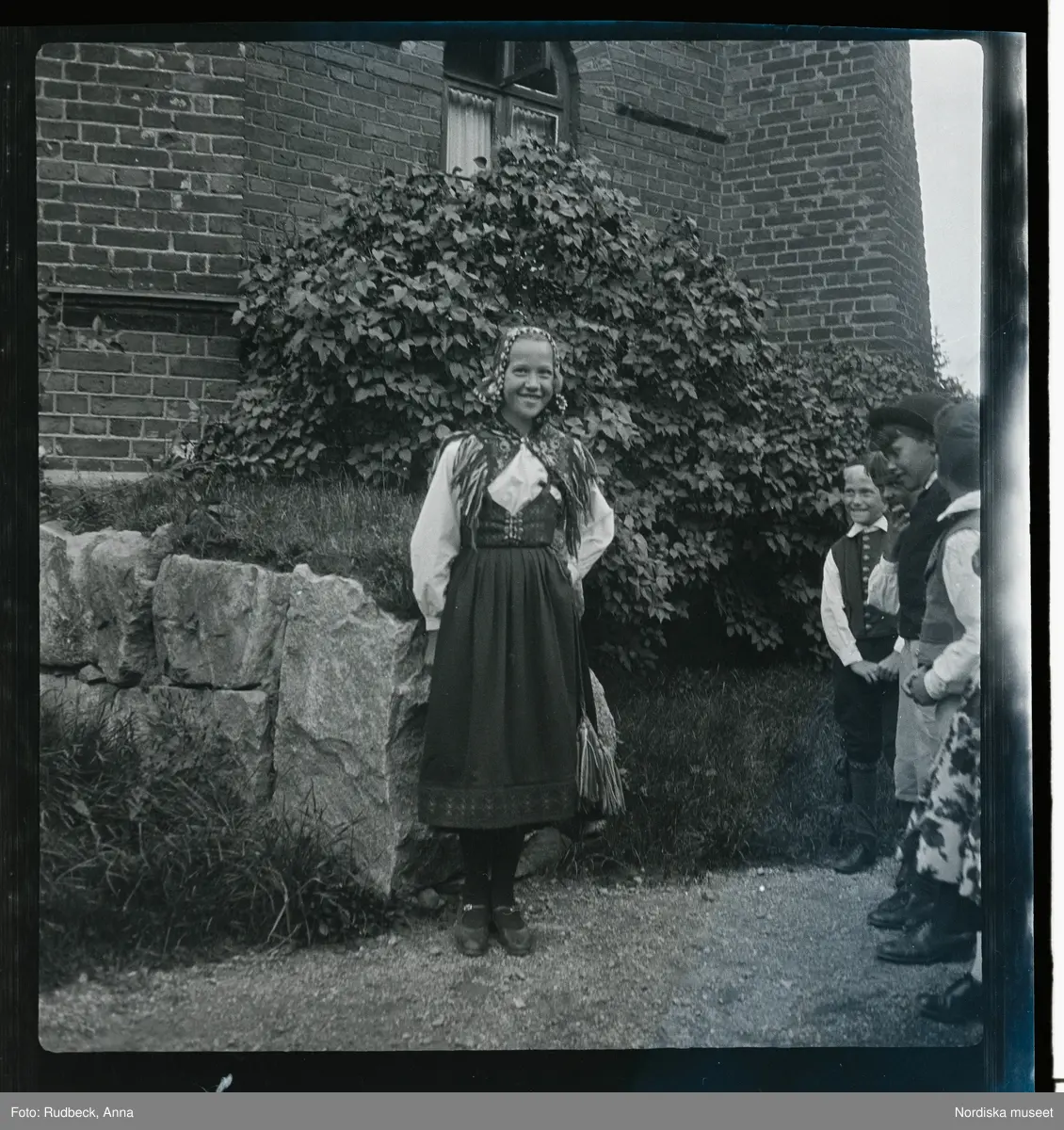 Skansen Ringleksbarn. En flicka i folkdräkt, utomhus på Skansen.