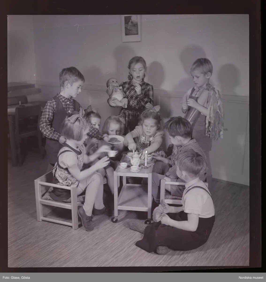 Titel: L.M.-gården, Midsommarkransen, barnkrubba, reportage för Vecko-Nytt 1948.