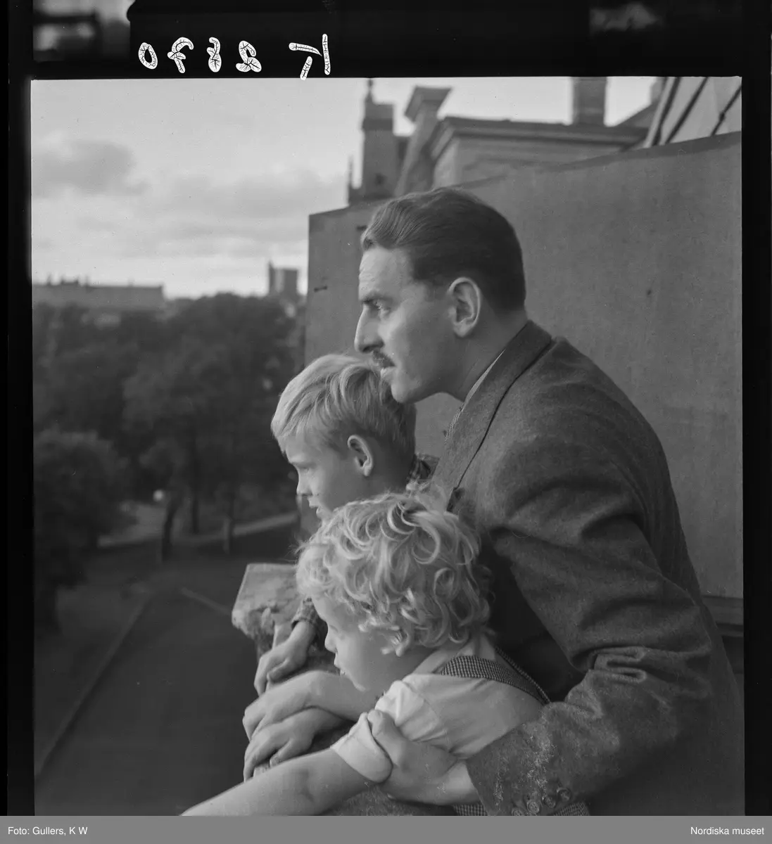 513 B Red. Karlströmer. Runar Karlströmer med barn blickar ut från en balkong.