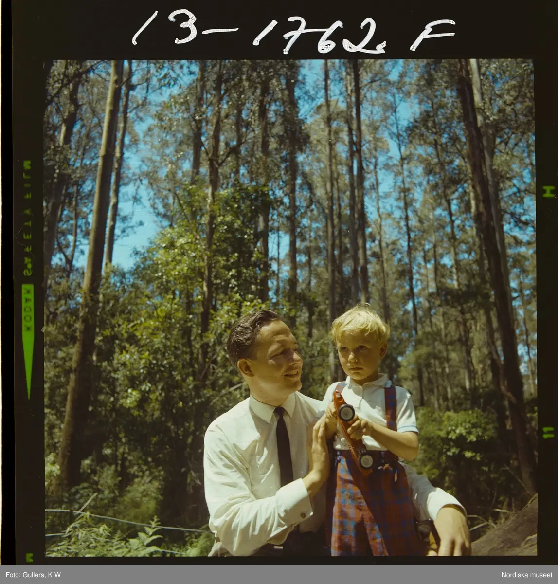 2753/1 Australien allmänt. Porträtt av en man och en pojke med en leksaksbil i händerna.