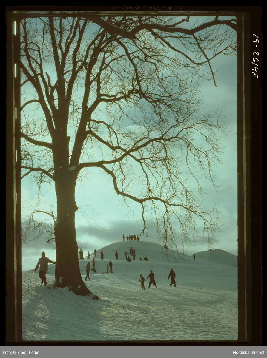 2771/46 Landskap-natur Vinterlekar på Uppsala högar för kalendermotiv.