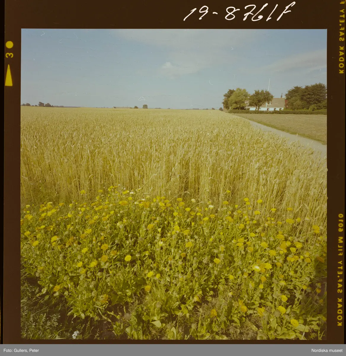 2771/52 Landskap Skånskt sädesfält med blommor i förgrunden.