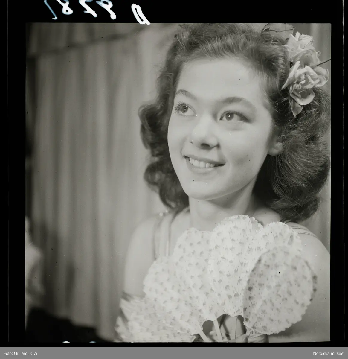 561 Operan för Allers. Porträtt av ung kvinna med solfjäder.