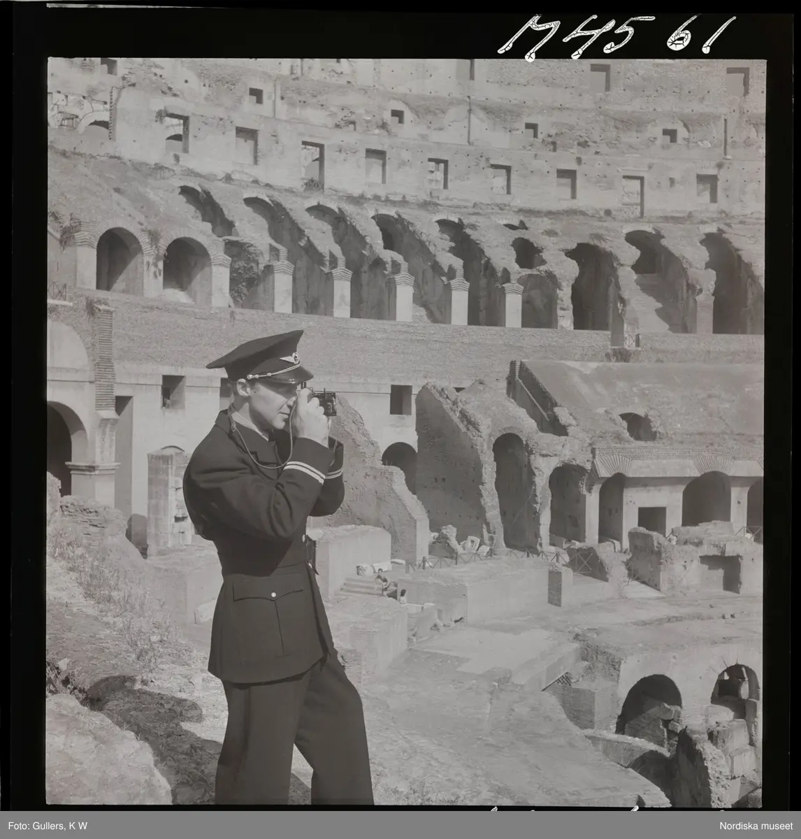 1717/B Rom. En man i uniform fotograferar i Colosseum.
