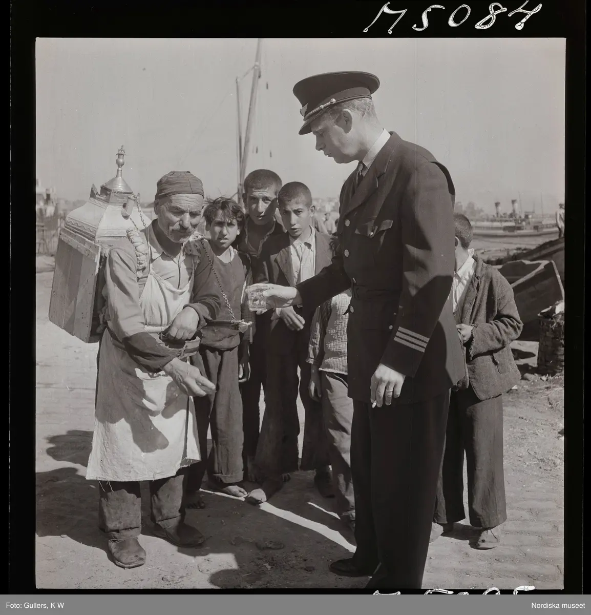Istanbul. En pilot serveras té av en gatuförsäljare som bär en samovar på ryggen.