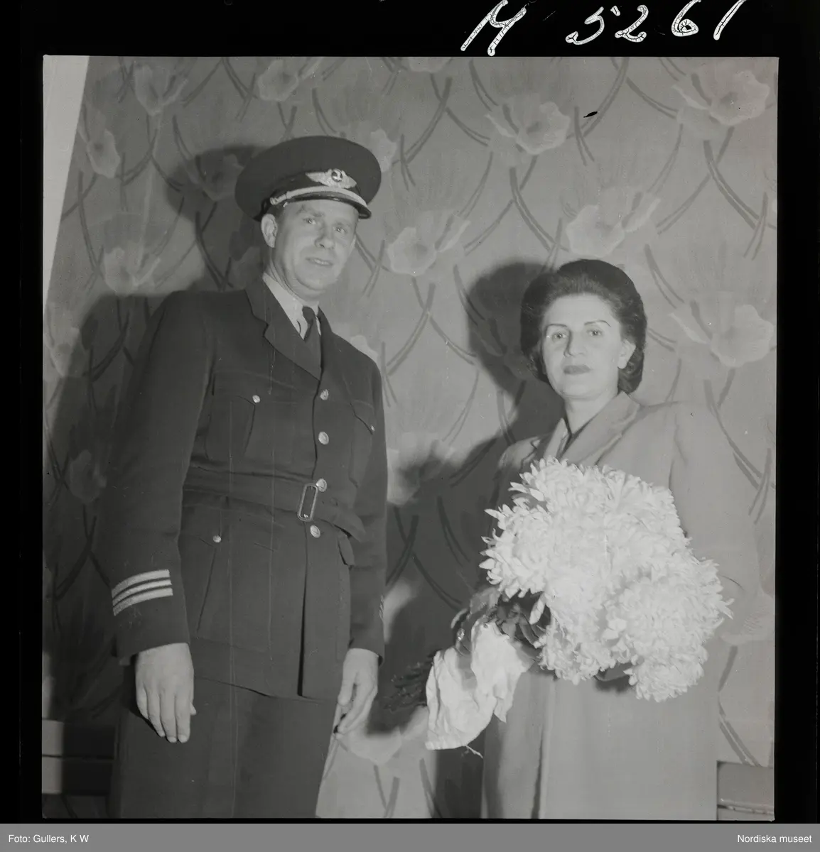Istanbul. En man i uniform och en kvinna med blombukett i famnen.