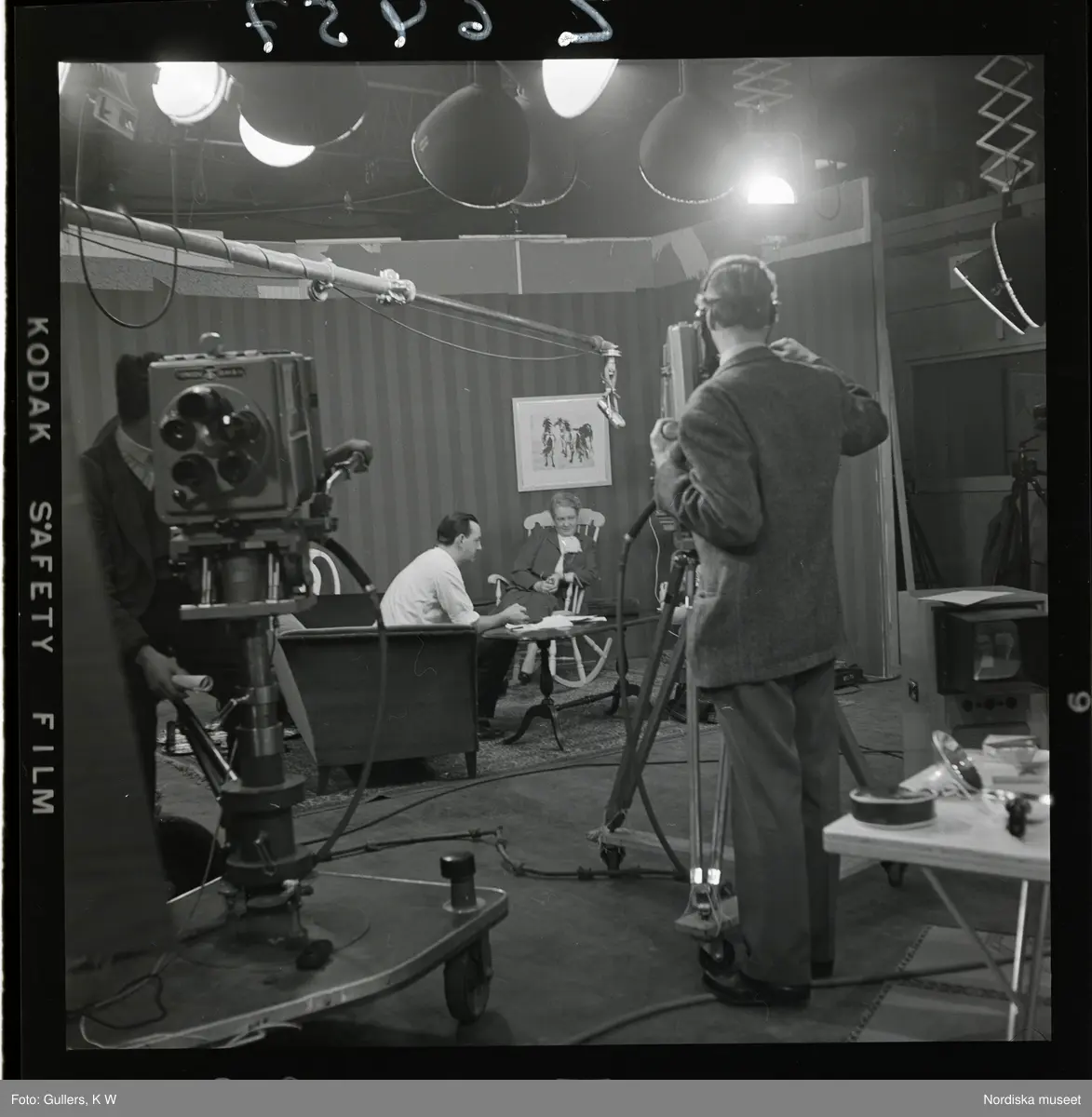 2378 Television Tak för TV; Sändning; Från utsändn. T-V-Studion + KWG på TV . Fotograf K W Gullers i TV-studio vid inspelning av fotografi-kurs. "Gullers fotokurs"