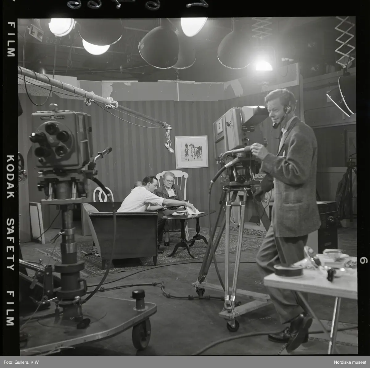 2393 Television Tak för TV; Sändning; Från utsändn. T-V-Studion + KWG på TV . Fotograf K W Gullers i TV-studio vid inspelning av fotografi-kurs. "Gullers fotokurs"