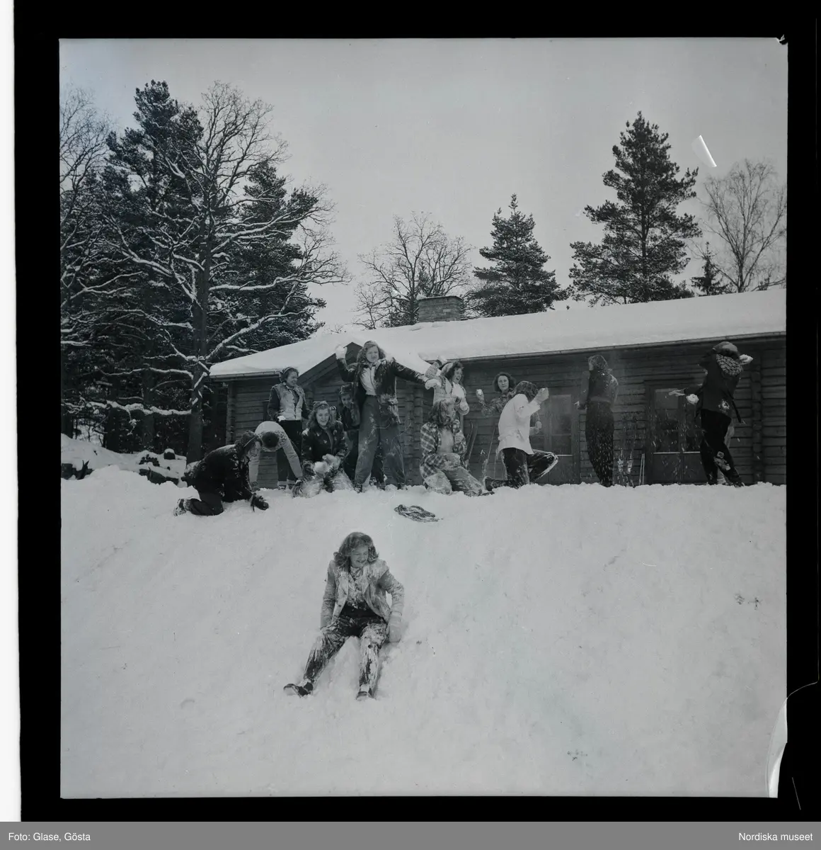 Hellasgården, Ringblom med fru på trappan samt skidåkaren Göte Andersson, 15-12-1944.