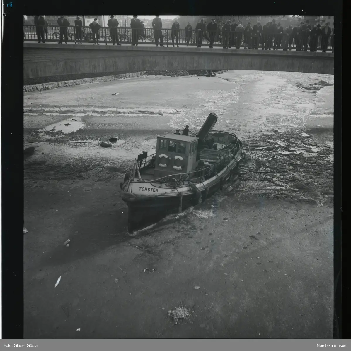 Titel: Isbrytare. Bryter ränna i Klara sjö, 1946.