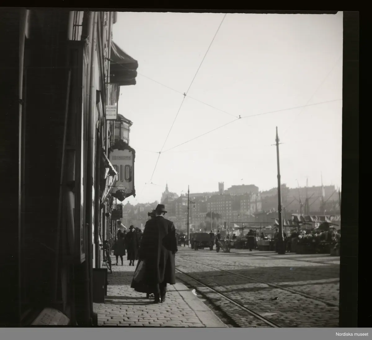 Kornhamnstorg, Stockholm. På en fasad skylt för "Kornhamn Bio".