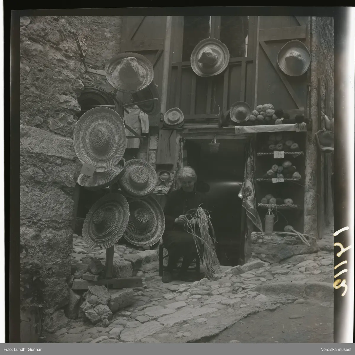 1950. Frankrike. Kvinna sitter och tillverkar stråhattar