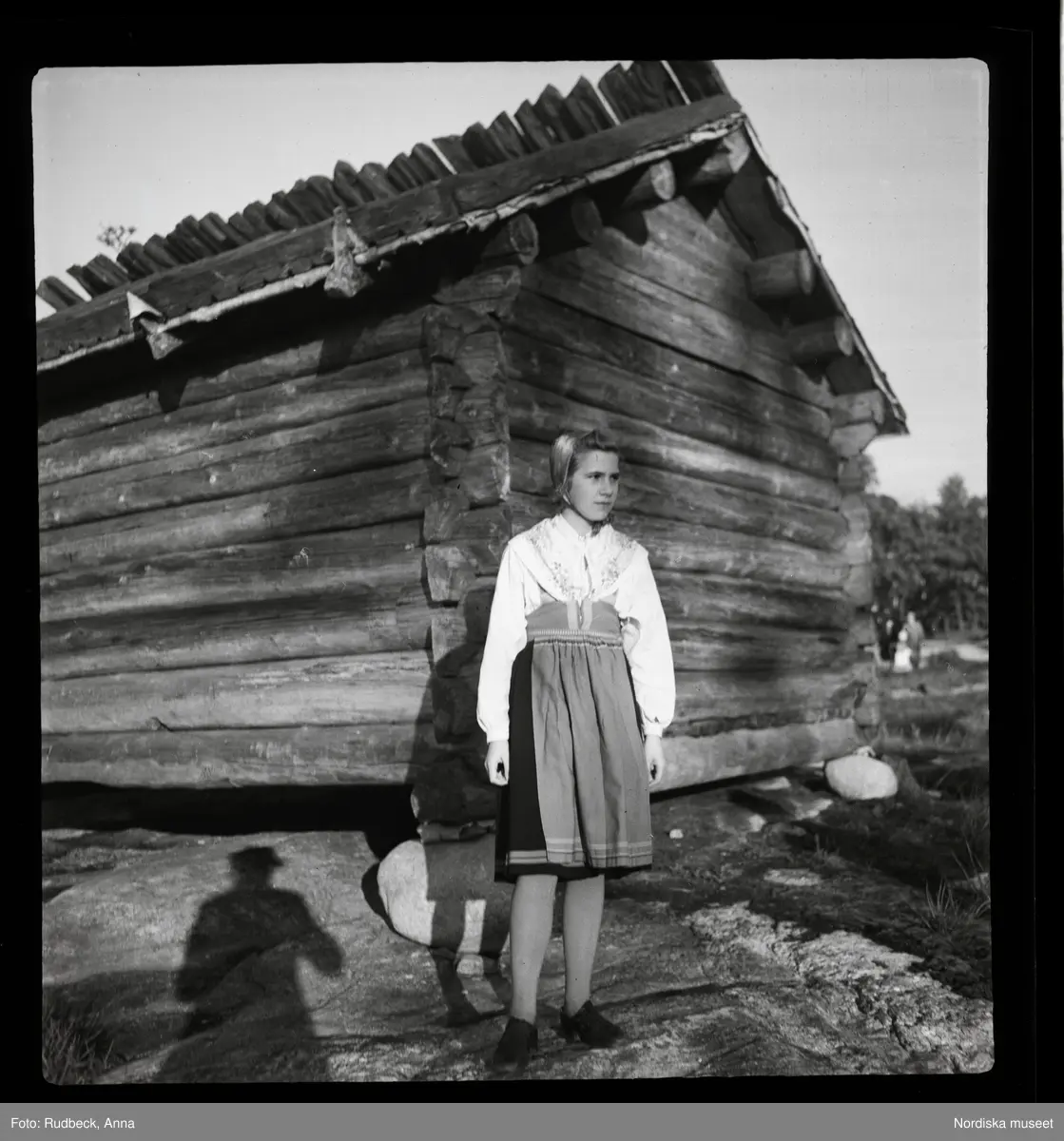 104 Skansen Ringleksbarn. En flicka i folkdräkt, utomhus på Skansen.