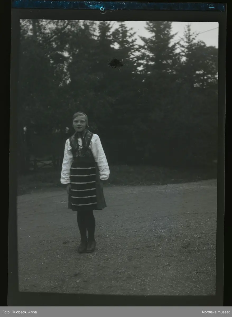 21 Skansen Ringleksbarn. En flicka i folkdräkt, utomhus på Skansen.