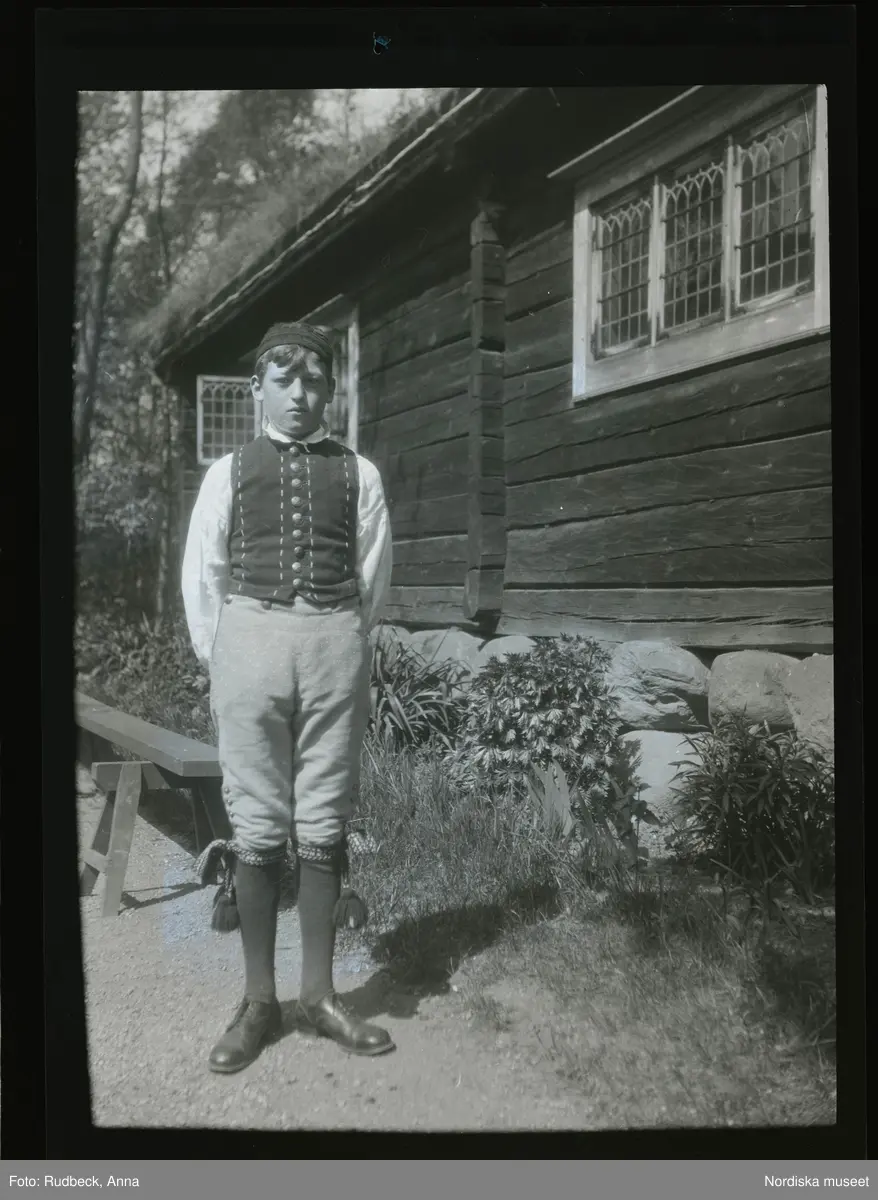 10 Skansen Ringleksbarn. En pojke i folkdräkt, utomhus på Skansen.