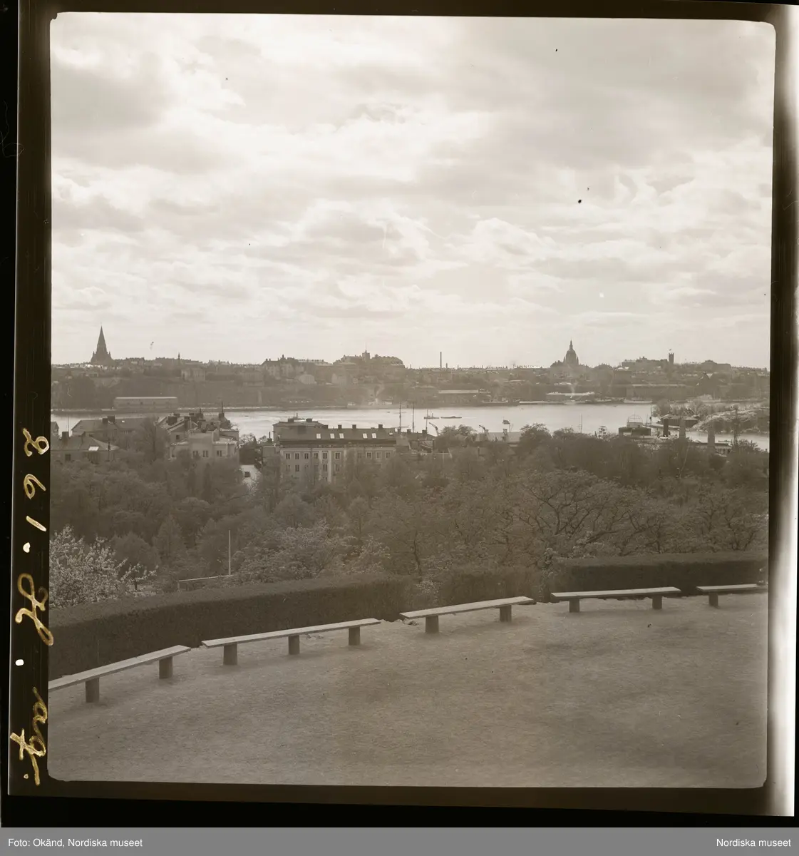 Vy från Skansen, Djurgården över Södermalm med Sofia och Katarina kyrkor. Stockholm.