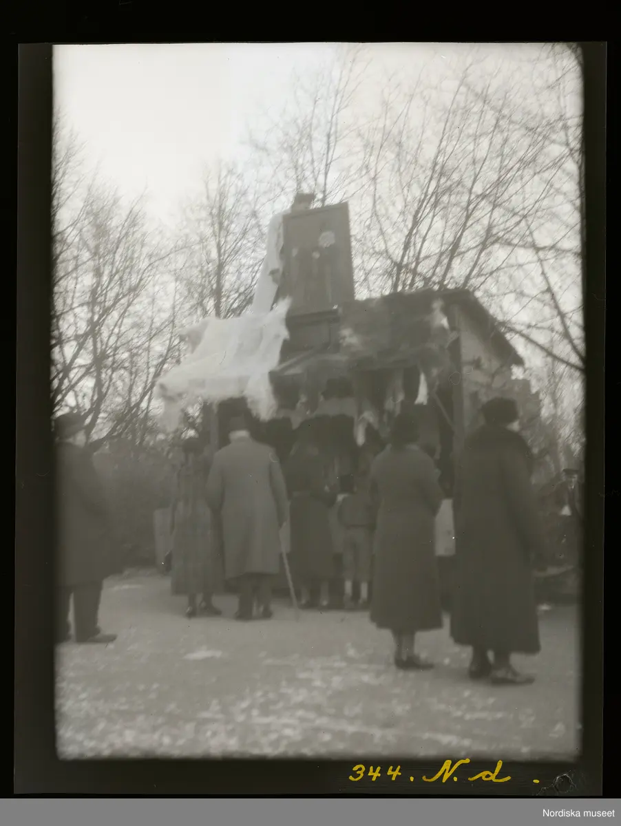 Människor framför ett marknadsstånd. Skansen, Stockholm.