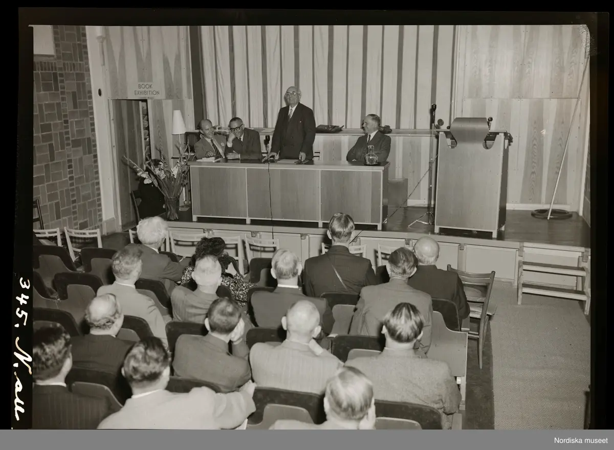Fyra män sitter i en panel på scen i Nordiska museets hörsal.
