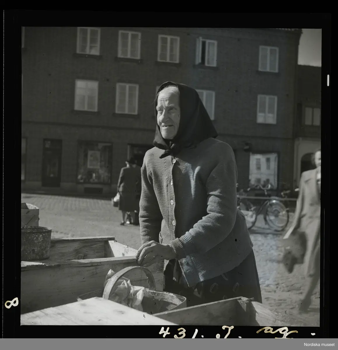 Äldre försäljerska på Stortorget, Laholm.