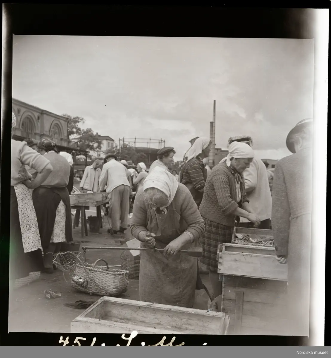 Handel på Fisktorget framför saluhallen, Karlskrona.