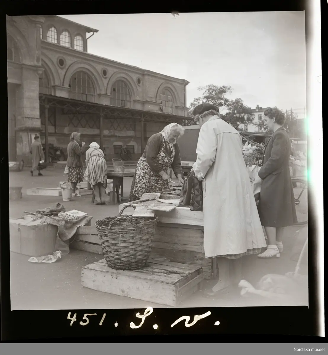 Handel på Fisktorget framför saluhallen, Karlskrona.