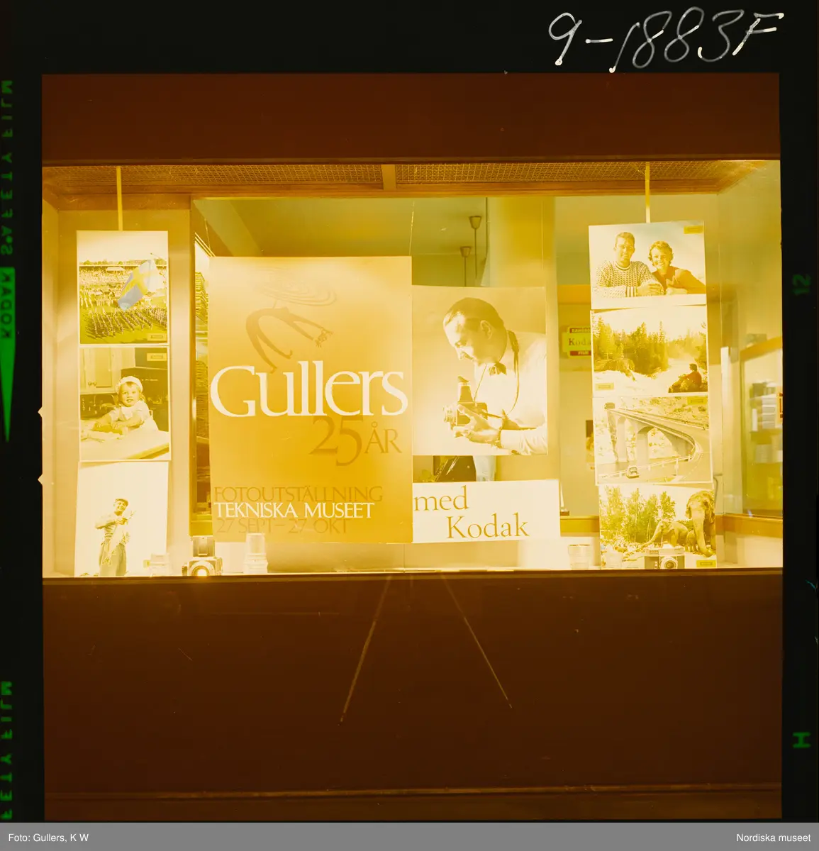Skyltfönster med reklam för K W Gullers 25 år fotoutställning på Tekniska museet.
