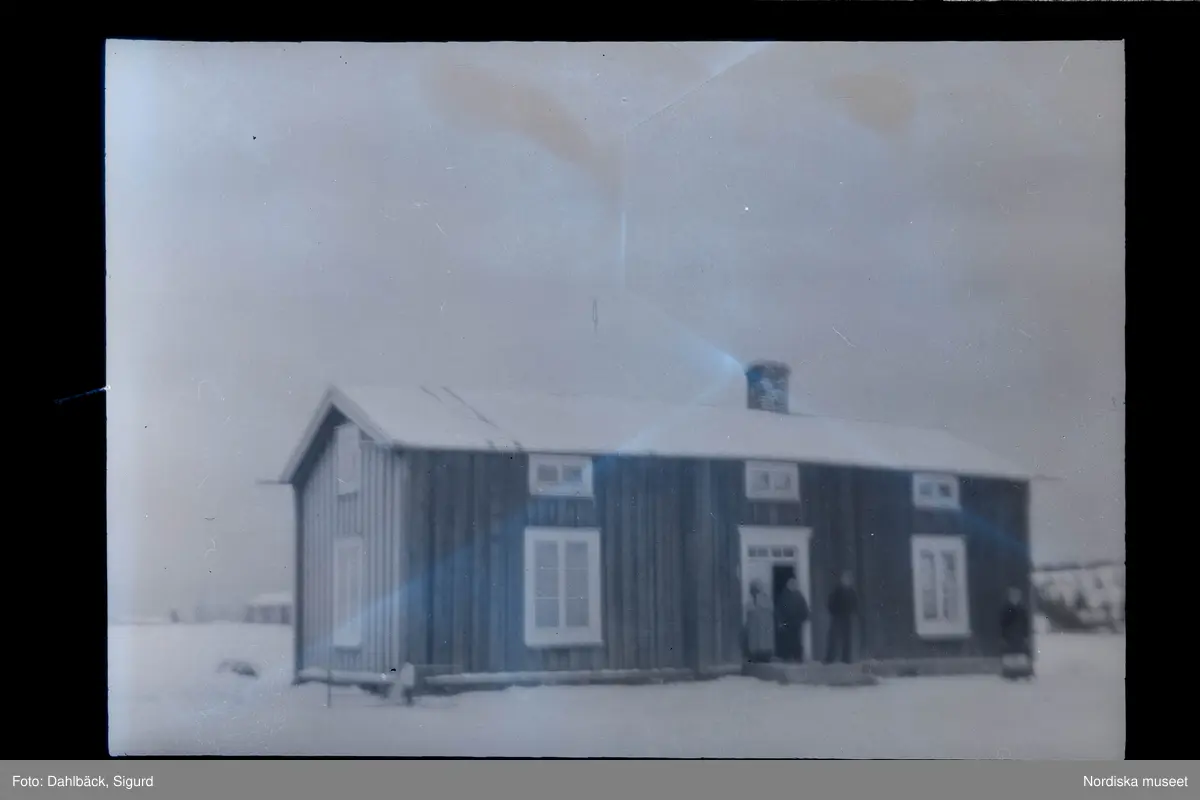 Fotografens anteckning: August Holmströms gård + Aug. Holmström och h. h. och Gottfrid P. och fru Helena Markström.