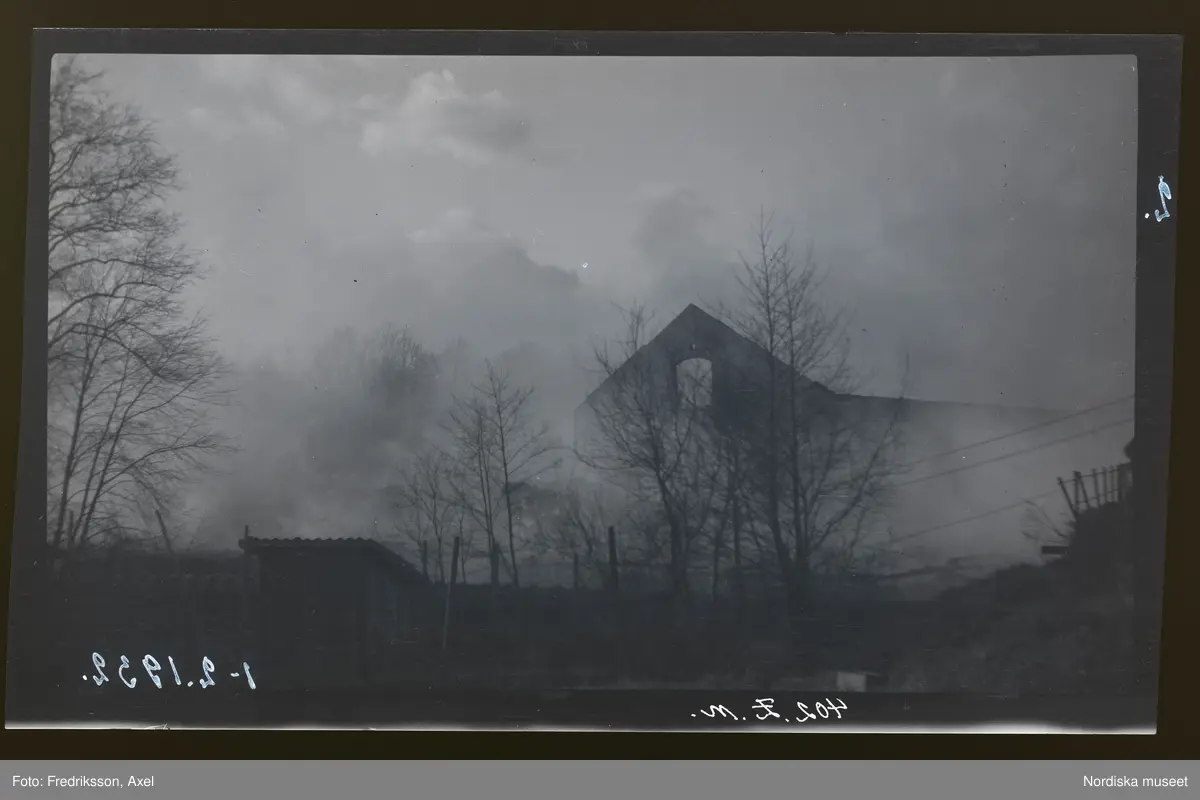 En rykande, utbränd ekonomibyggnad. 1 februari 1932.