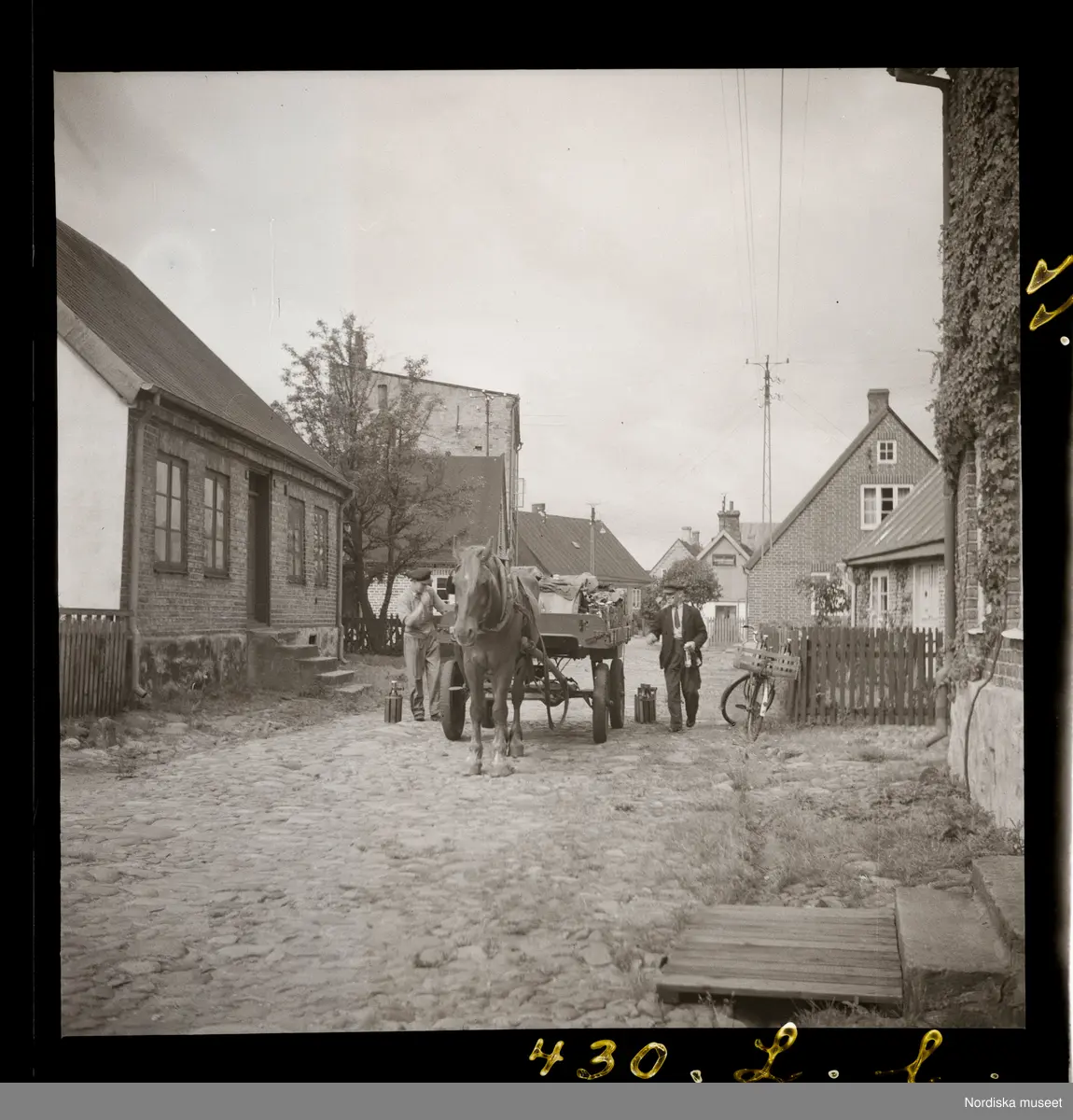 Text på montering i arkivet: Bryggarvagnen en torsdagsmorgon på Partullsgatan. Närmas t.h. skymtar Partullsgatan 4.
