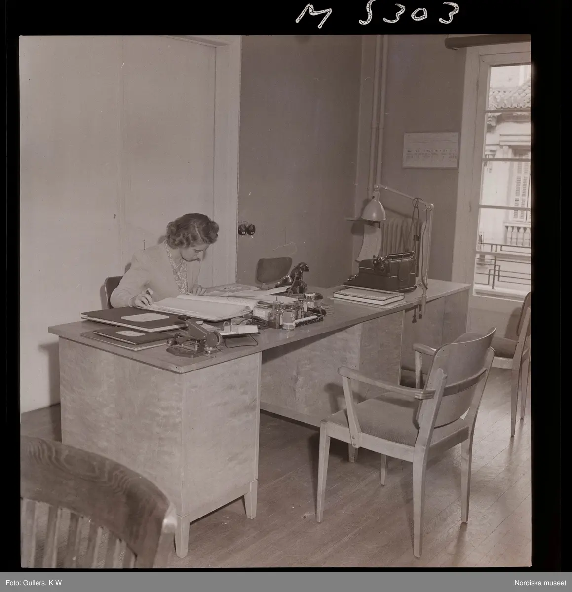 1717 I Svenska konsulatet Aten. En kvinna arbetar vid ett skrivbord.
