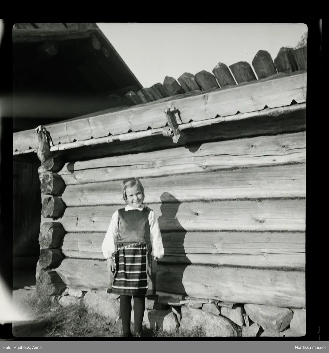 101 Skansen Ringleksbarn. En flicka i folkdräkt, utomhus på Skansen.