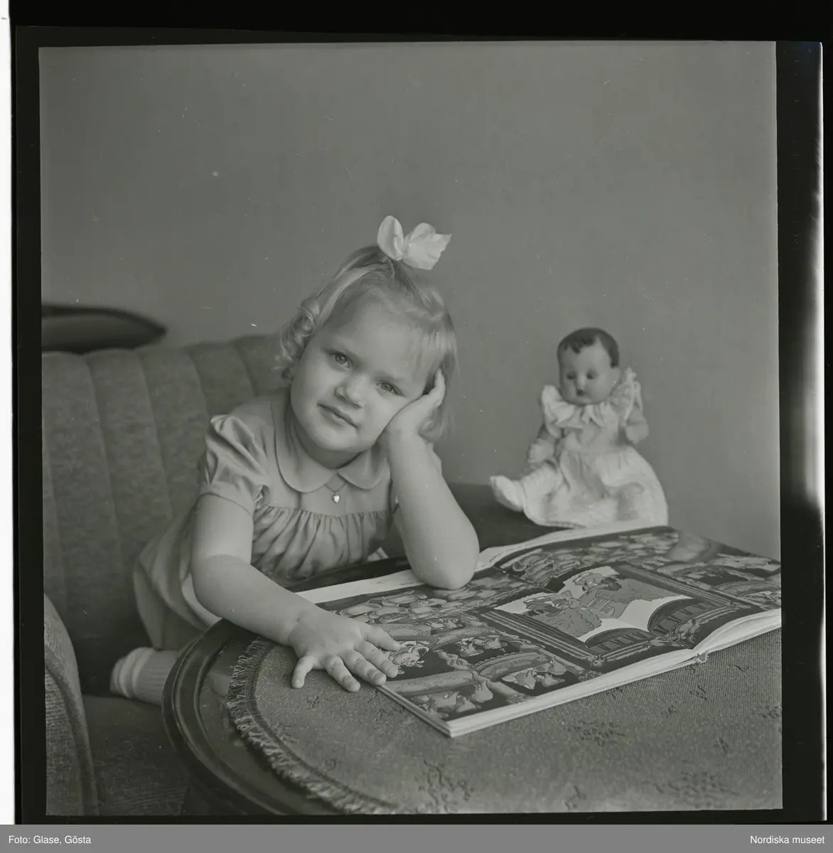 Porträtt av en flicka som sitter med en bok.