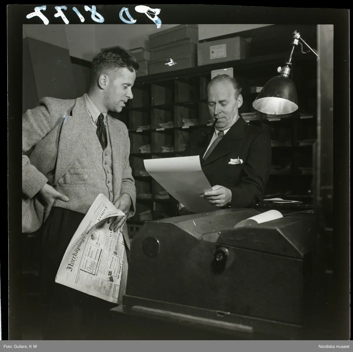 Journalist P. Wange och en kollega på Norrköpings tidningars redaktion.