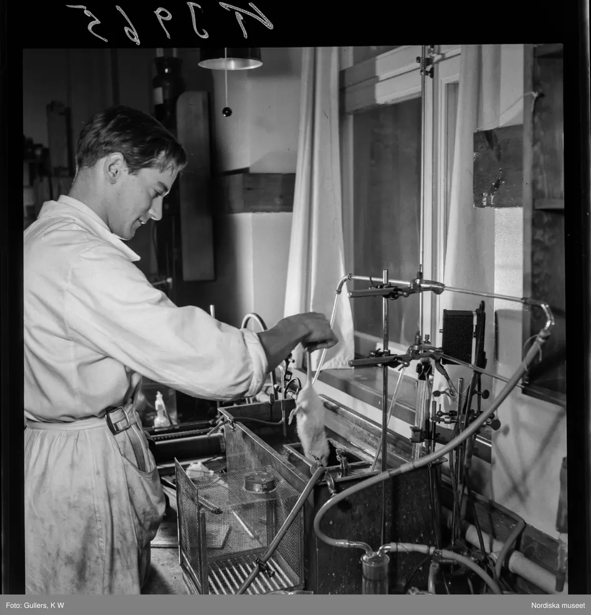 507 D Ultuna. Djurförsök. En man arbetar i ett labb.