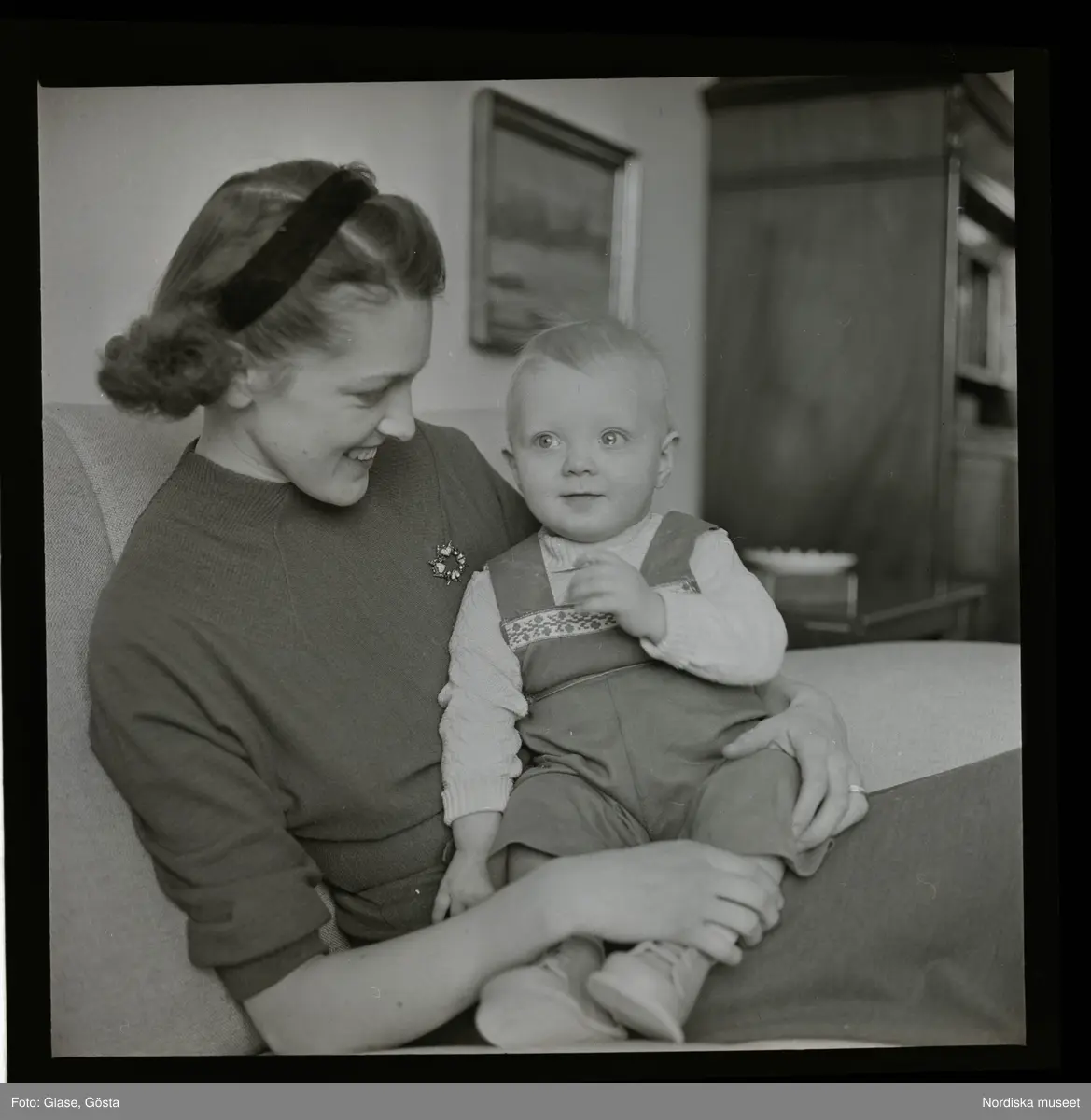 En kvinna sitter med ett litet barn i knät.