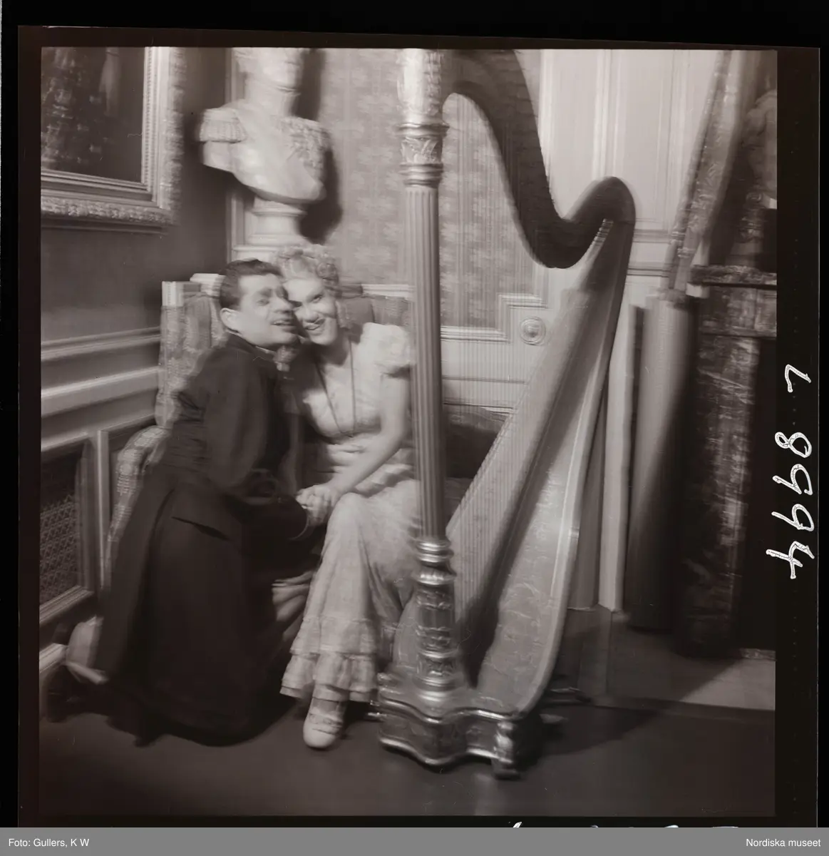 561 A Operareportage för tidningen Vi. En man och en kvinna sitter intill en harpa.