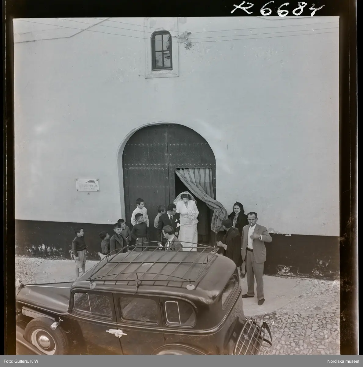 568 F. Stieg Trenter, Torremolinos. Bröllop. Ett brudpar med sällskap stiger just ur kyrkan.