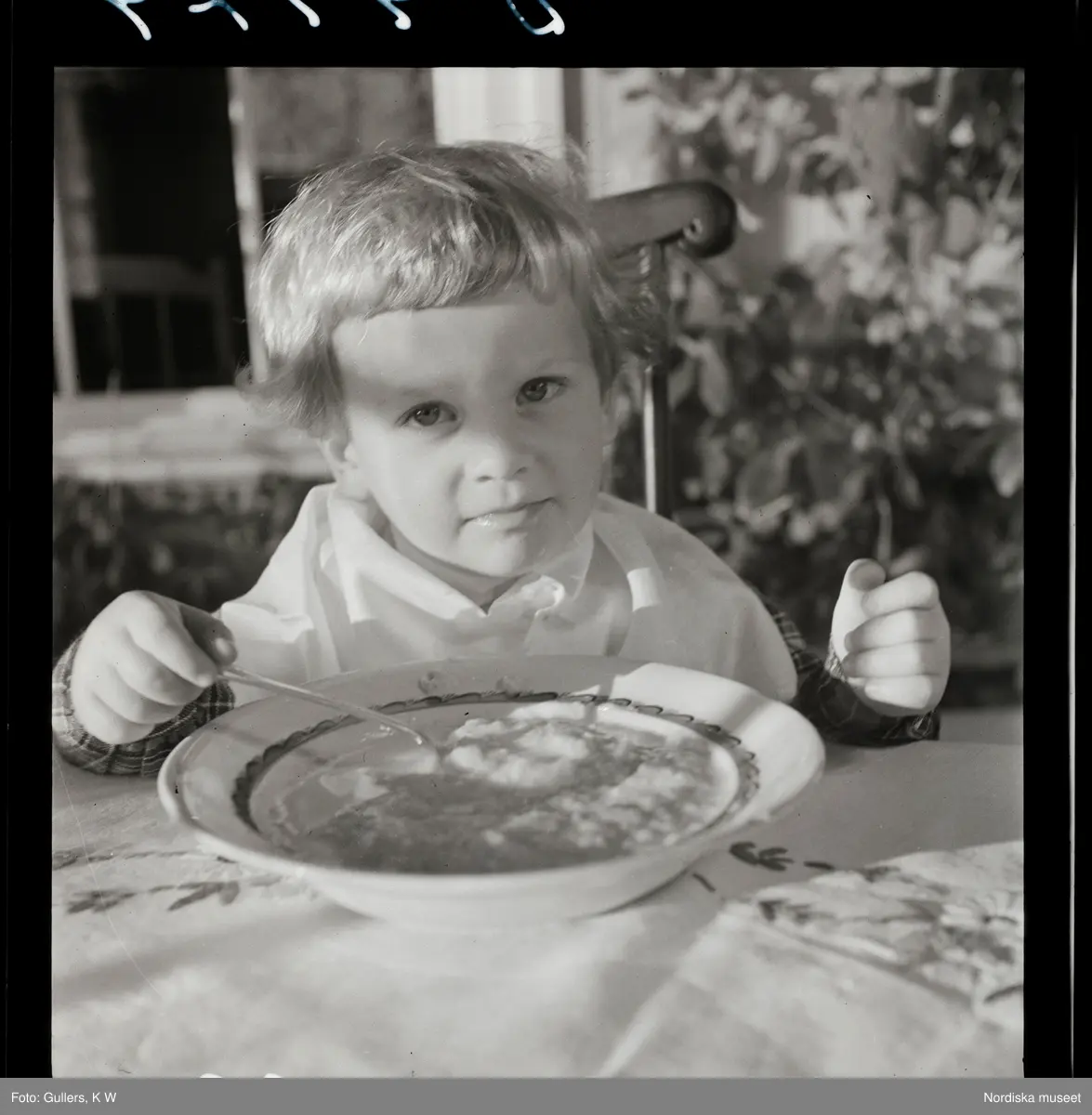 564 Vårgårda Havregryn. Ett barn äter gröt.