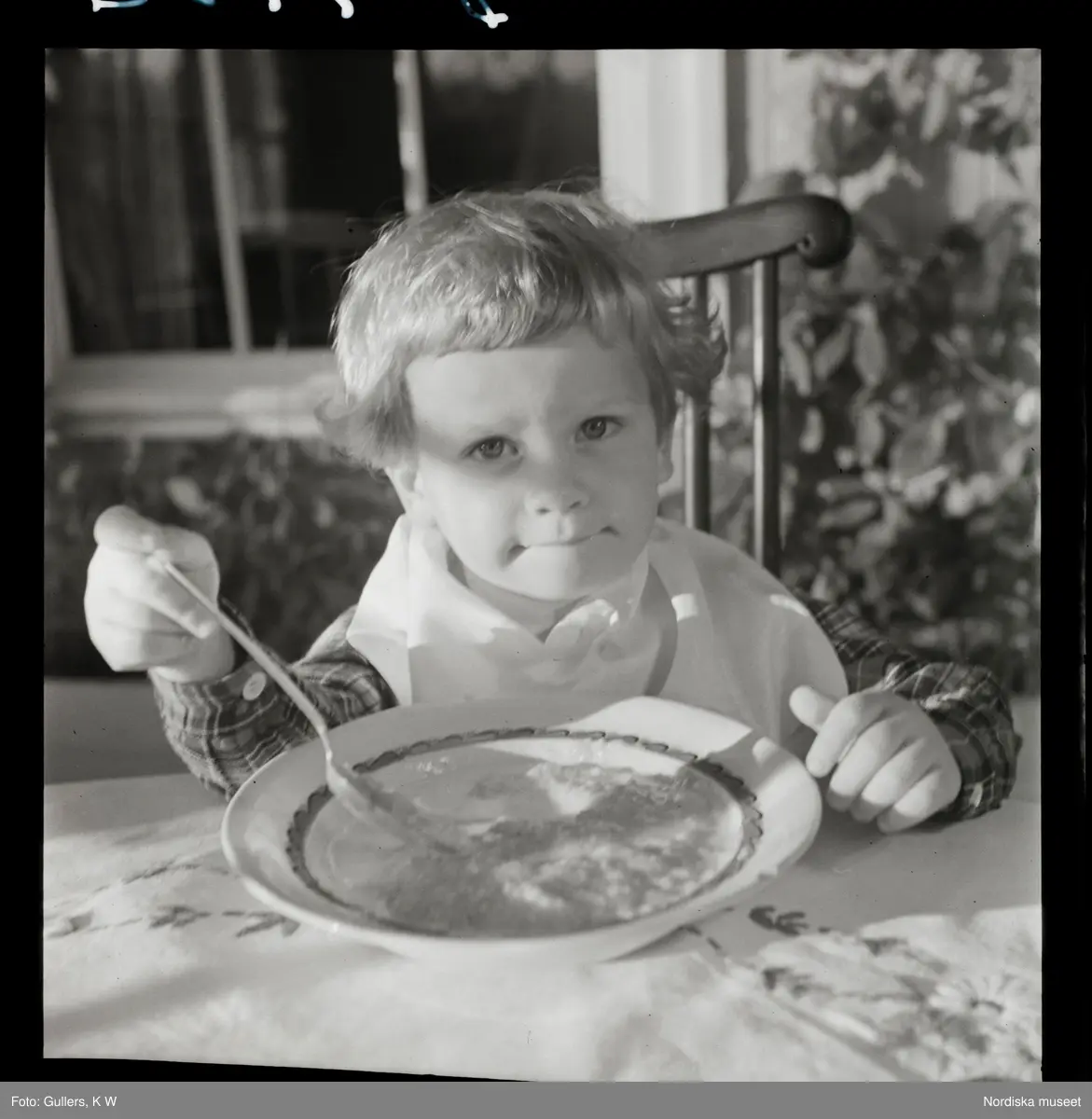 564 Vårgårda Havregryn. Ett barn äter gröt.