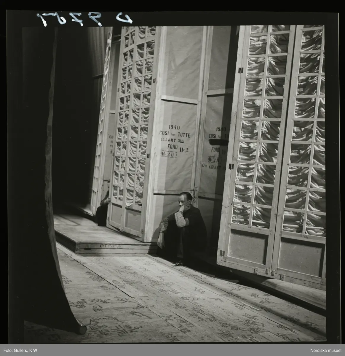 561 Operan för Allers. En man sitter och tar en paus i kulisserna.