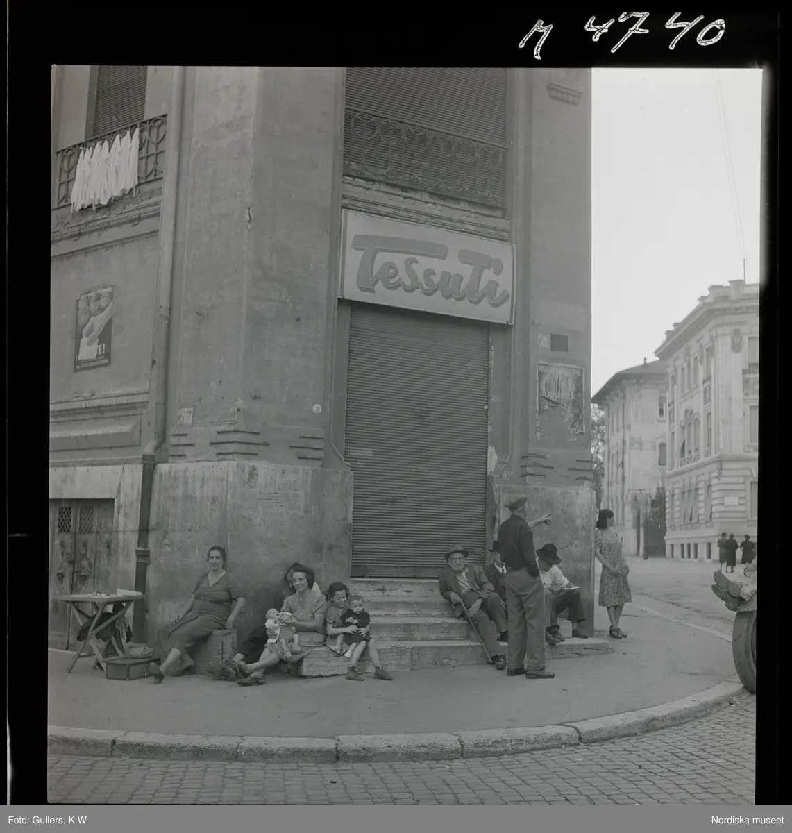1717/A Rom. Gatuliv. Människor sitter i en gatukorsning.